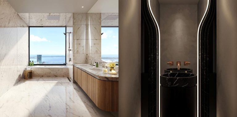 Von modernen Studios bis hin zu großzügigen Drei-Schlafzimmer-Residenzen bietet jede Einheit ein exklusives Wohngefühl, kuratiert vom Interior-Design-Studio Woods Bagot. Warme Hölzer, kontrastreiche Schwarz-Weiß-Akzente und feinste Handwerkskunst verkörpern eine Atmosphäre von zeitloser Eleganz.