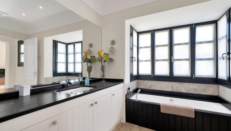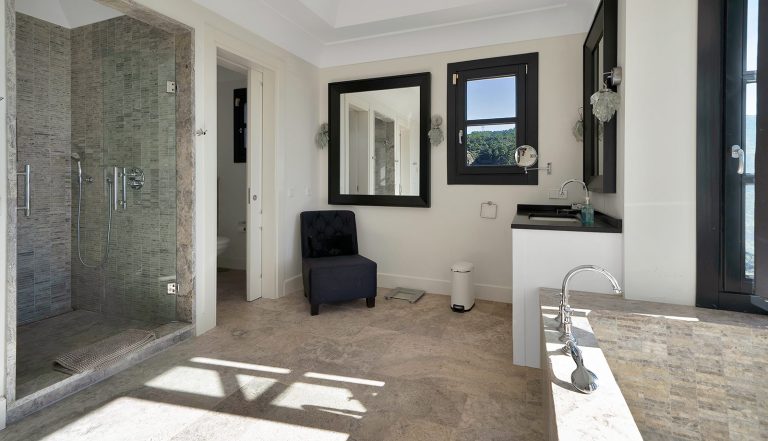 Die Architektur des Hauptwohnsitzes folgt klassischen Linien und vereint harmonische Proportionen mit lichtdurchfluteten Räumen. Vier großzügige En-Suite-Schlafzimmer im Haupthaus sind so positioniert, dass sie die spektakuläre Aussicht optimal einfangen und höchsten Wohnkomfort garantieren. Ein separates Gästeapartment mit eigenem Wohn- und Schlafbereich bietet flexible Nutzungsmöglichkeiten für Besucher oder Personal und gewährleistet dabei vollständige Unabhängigkeit. Hochwertige Materialien, sorgfältig ausgewählte Details und eine makellose Ausführung verleihen der Villa nachhaltigen Wert und zeitlose Attraktivität.