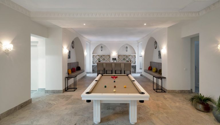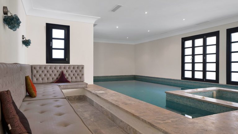 Die untere Ebene ist vollständig dem Wohlbefinden und der Unterhaltung gewidmet. Ein stilvoller Barbereich, ein Entertainmentraum mit Billardtisch, ein privates Kino, ein voll ausgestatteter Fitnessraum sowie ein exklusiver Wellnessbereich mit Sauna, beheiztem Innenpool und Whirlpool schaffen ein ganzjähriges Resort-Erlebnis im eigenen Zuhause.