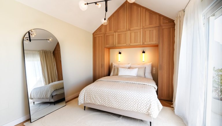 Das Haus erstreckt sich über vier Ebenen und bietet fünf Schlafzimmer sowie fünf Badezimmer. Zwei großzügige Master-Suiten mit Ankleidebereichen und privaten Terrassen schaffen luxuriöse Rückzugsorte mit höchstem Komfort.