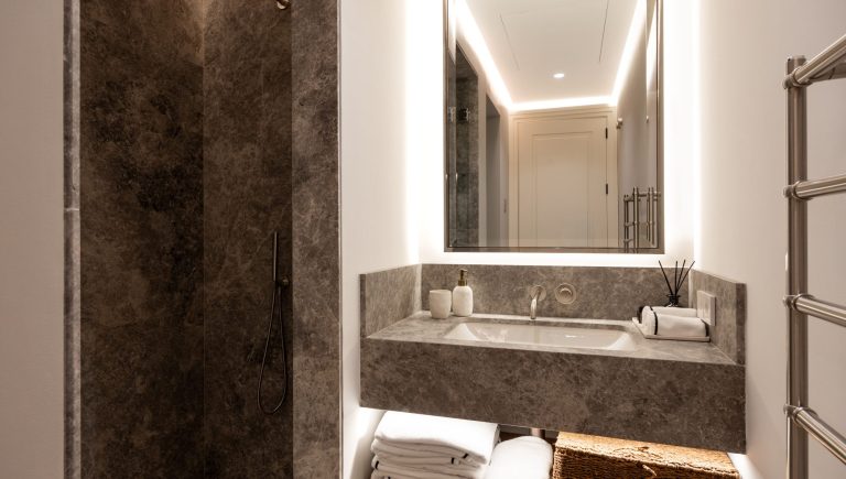 Im Inneren erwarten Sie sechs großzügige Schlafzimmer, jeweils mit höchstem Anspruch an Komfort und Privatsphäre, sieben elegante Badezimmer sowie ein zusätzliches Gäste-WC. Maßgefertigte Möbel und ein anspruchsvolles Interior-Design verleihen den Räumen eine warme, luxuriöse Atmosphäre. Die weitläufigen Terrassen der oberen Etagen bieten spektakuläre Ausblicke auf die Küste und laden dazu ein, die mediterrane Sonne in vollkommener Privatsphäre zu genießen.