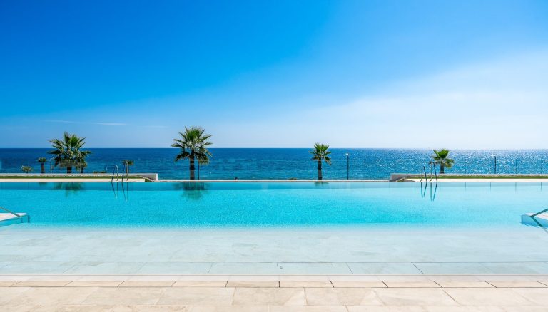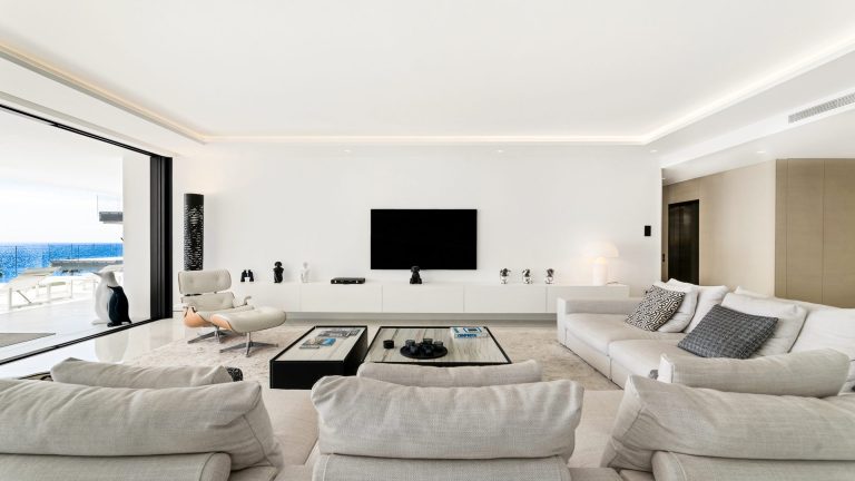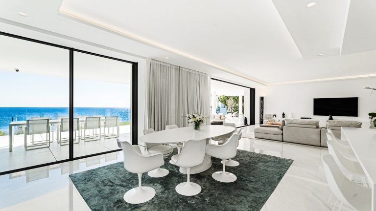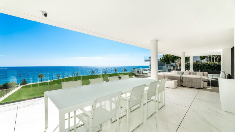 Diese außergewöhnliche Vier-Zimmer-Residenz in mittlerer Etage liegt in erster Strandlinie der begehrten New Golden Mile und bietet eine seltene Kombination aus Privatsphäre, moderner Eleganz und unverbaubarem Blick auf das Mittelmeer zwischen Marbella und Estepona. Eingebettet in eine geschlossene Wohnanlage mit kontrolliertem Zugang und 24-Stunden-Sicherheitsdienst verkörpert sie anspruchsvolles Küstenwohnen auf höchstem Niveau. Großzügige, bodentiefe Fenster eröffnen spektakuläre Perspektiven auf das Meer, während weitläufige Terrassen ein nahtloses Indoor-Outdoor-Erlebnis für jede Jahreszeit schaffen.