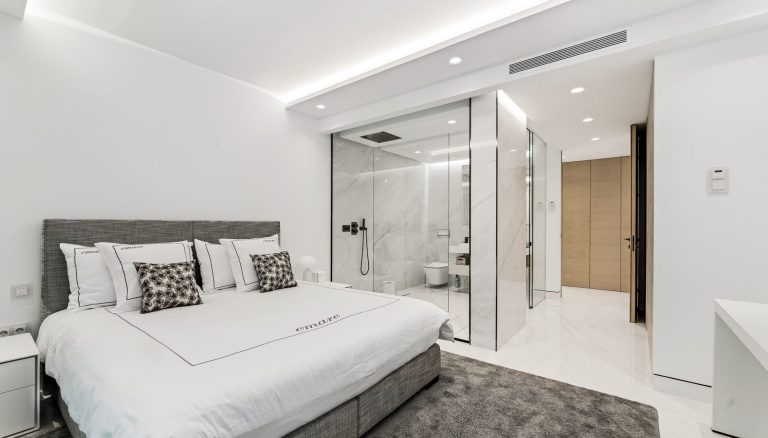 Im Inneren überzeugt das durchdachte Ein-Ebenen-Layout mit vier großzügigen Schlafzimmern, jeweils mit eigenem Bad, die höchsten Komfort und Diskretion gewährleisten. Fußbodenheizung im gesamten Wohnbereich, lichtdurchflutete offene Räume und fließende Übergänge zur Terrasse unterstreichen den modernen Wohnkomfort. Ein privater Aufzug führt zu einem zusätzlichen, voll ausgebauten Untergeschossraum mit Tageslicht und Bad – derzeit als Fitnessbereich genutzt, ideal auch als Spa-Zone, Büro oder Entertainment-Lounge. Vier Stellplätze sowie ein biometrisches Zugangssystem mit direktem Zugang von der Garage bieten zusätzliche Exklusivität und Sicherheit.
