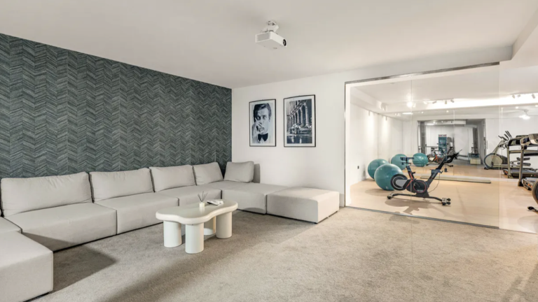 Die untere Ebene erweitert das Wohnkonzept um weitere exklusive Annehmlichkeiten: eine komfortable TV-Lounge für entspannte Abende, einen privaten Fitnessbereich, eine funktionale Waschküche sowie großzügige Stauraummöglichkeiten. Moderne Technologien und energieeffiziente Lösungen erhöhen den Wohnkomfort zusätzlich. Dazu gehören unter anderem eine Garage für zwei Fahrzeuge, elektrische Eingangstore, ein integriertes Smart-Home-System, eine energieeffiziente Wärmepumpe, elektrische Sonnenschutzsysteme, Fußbodenheizung im Hauptbad sowie ein automatisiertes Bewässerungs- und Gartenpflegesystem.