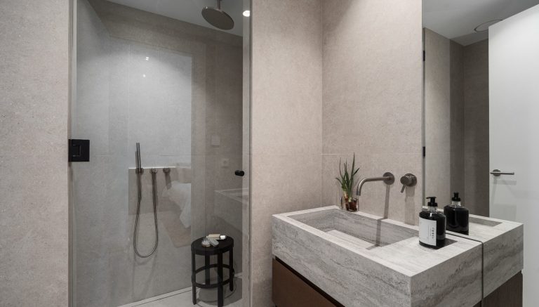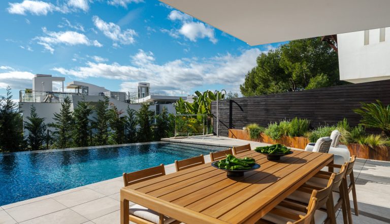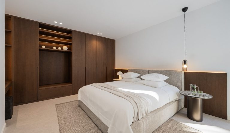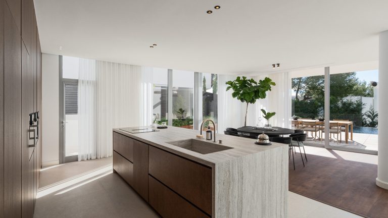 Das Erdgeschoss ist mit einem offenen Konzept gestaltet, das das Wohnzimmer, den Essbereich und die Küche in eine zusammenhängende Umgebung versenkt. Große Schiebetüren öffnen sich direkt auf eine private Terrasse mit eigenem Pool und fördern einen nahtlosen Indoor-Outdoor-Lebensstil, der in luxuriösen Immobilien in Marbella sehr geschätzt wird. Dieses Layout unterstützt sowohl komfortables tägliches Leben als auch einfache Unterhaltung, eine wichtige Überlegung für Käufer, die nach High-End-Immobilien in Südspanien suchen.
