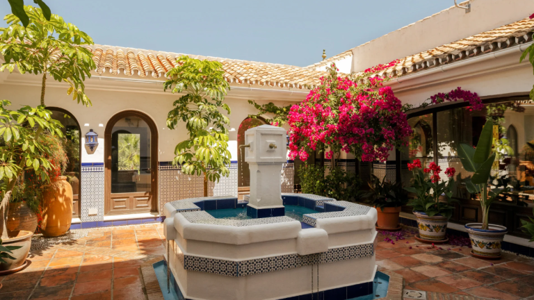 Das Herzstück der Finca bildet ein traditioneller andalusischer Innenhof mit zentralem Brunnen und kunstvollen Skulpturen – ein ruhiger Rückzugsort, der den kulturellen Charakter der Region eindrucksvoll widerspiegelt. Die liebevoll angelegten, reifen Gärten umgeben einen imposanten 20 m x 8 m großen Swimmingpool und bieten zahlreiche schattige Rückzugsbereiche, ideal für Entspannung, private Empfänge oder exklusive Veranstaltungen.