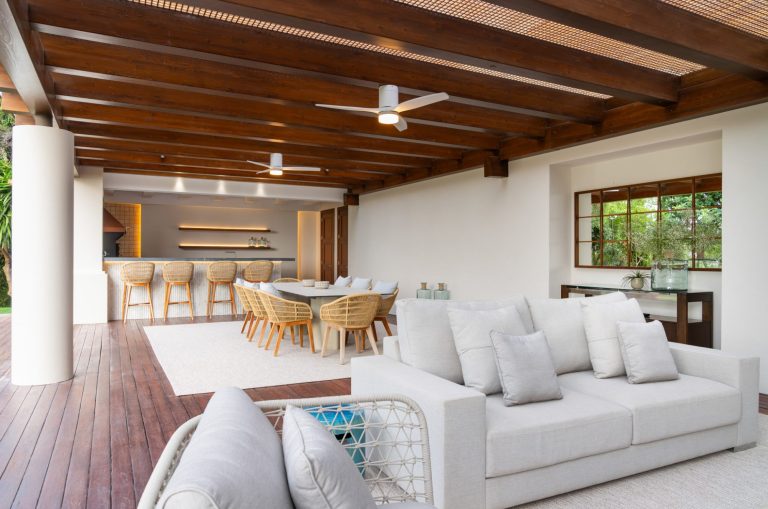 Der Außenbereich der Villa ist ein wahres Highlight: kunstvoll angelegte Gärten, weitläufige Terrassen und zwei beeindruckende Swimmingpools mit Wasserfallelementen schaffen eine exklusive Resort-Atmosphäre. Eine stilvolle Außenbar sowie ein voll ausgestatteter Grillbereich laden zu geselligen Abenden und kulinarischen Erlebnissen unter freiem Himmel ein.